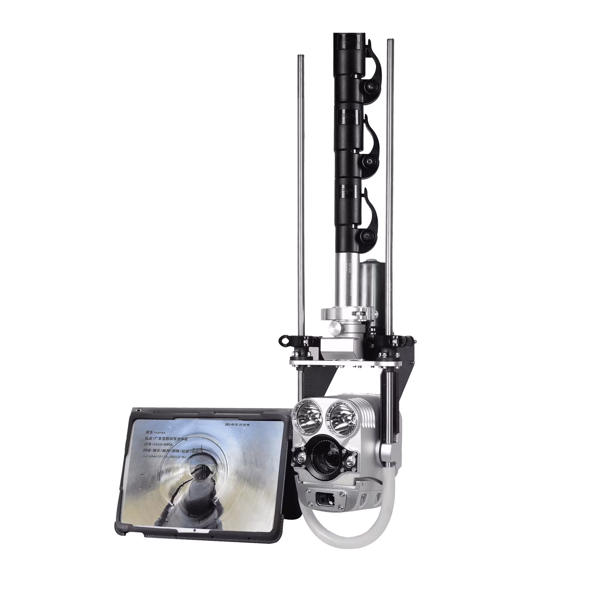 Trådlös FullHD inspektionskamera E25C & E30C för brunn är utformad för snabb inspektion och diagnos av industriella tankar, behållare, brunnar och avloppsrör. Videon sänds till kontrollenheten via Wi-Fi, vilket gör det enkelt att styra kameran och spela in med 10-tums HD-läsplattan.